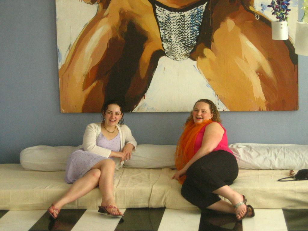 “Oh-my-god have you seen the painting in the other room.” Once again I was knocked out of my Jamie daydream by Katy and thrust into a room with a painting of a giant crotch. We of course posed for a photo beneath those muscular thighs.