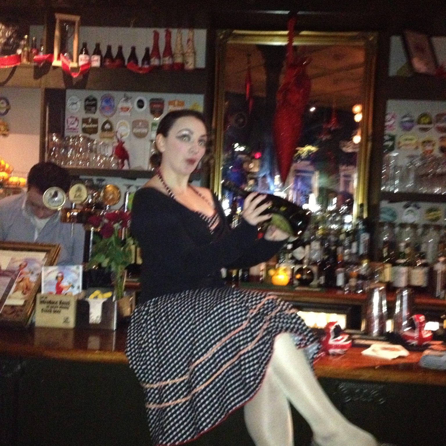 The show got into a bit of a rhythm after that incident. I loved the pre-show camaraderie; one of my fondest memories of the show was being hungover and getting ready for the show in the theatre before we had to hide backstage. We rarely used the dressing rooms in the theatre, preferring to take over the cabaret style seating with our make-up bags and mini light up mirrors. Laurence was plucking away at his guitar, singing. I was putting on my make-up. Vesper Fontaine, our singer for the show, was harmonising with Laurence. Rosie Kohl, our belly dancer, was stretching on stage, and Tim was playing with the lights. It was all lovely and calm.